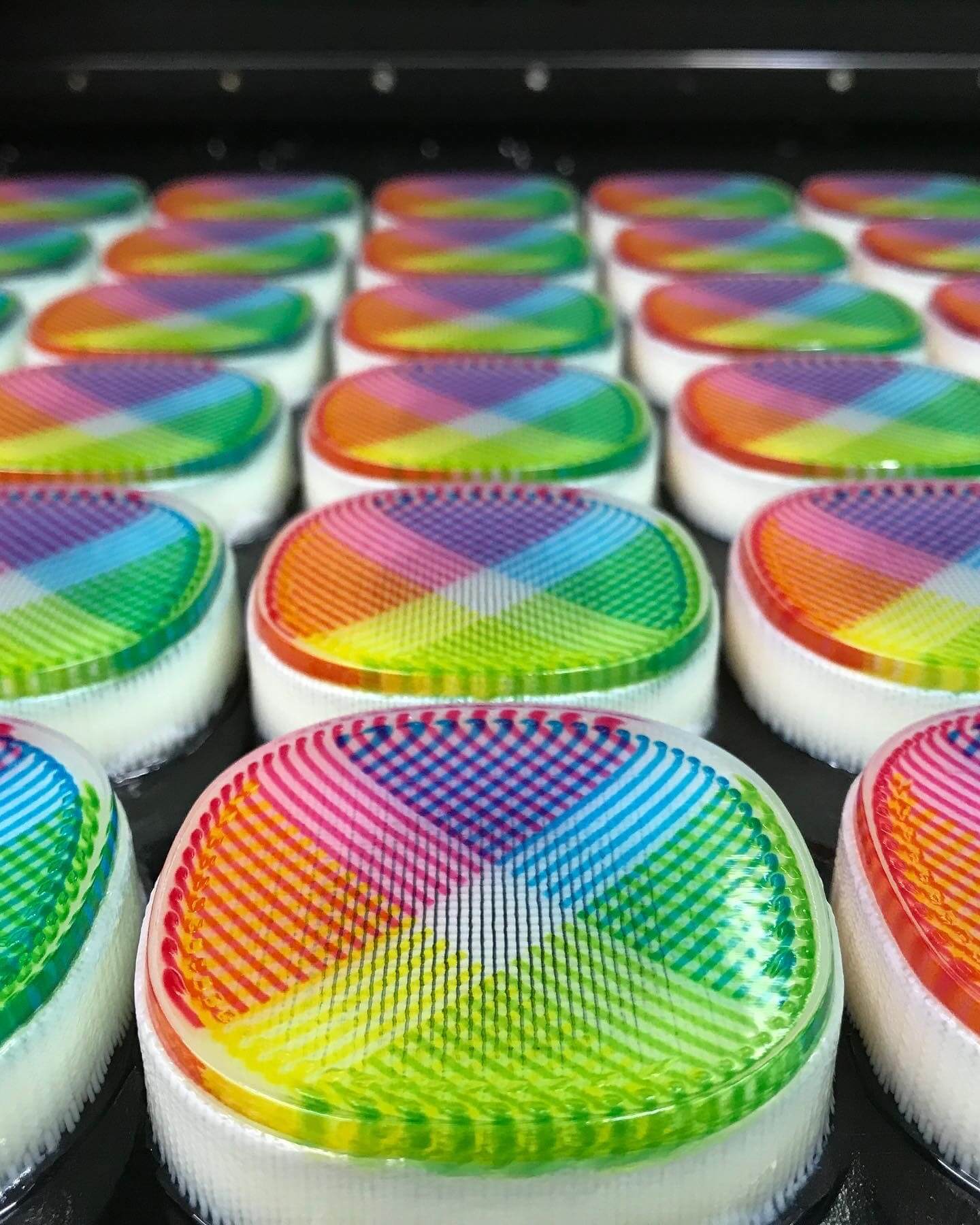 שילוב של חומרים שונים במודל אחד, כולל צבעים(מעל 500 אלף צבעים), שקיפות ורמות קשיחות מגוונות.